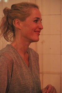 Interessant im Young Vic Theater übrigens: Die Bühne ist in der Mitte, die Zuschauer sitzen drumherum. Auf der dieser runden Bühne ist ein Rechteck installiert, das sich während der gesamten Vorstellung dreht. So bekommt jeder Zuschauer gleich viel Einsicht auf die Charaktere, die dargestellten Räume und die Requisiten. Eine wunderbare Idee! Die Schauspieler laufen teilweise so nahe am Publikum vorbei, dass man mittendrin ist. Und als Gillian Anderson am Ende die Bühne verlässt, tut sie das erst nach einem Rundgang über die Bühne – bei dem sie Augenkontakt mit den Zuschauern sucht, sich aber keine Emotion entlocken lässt.