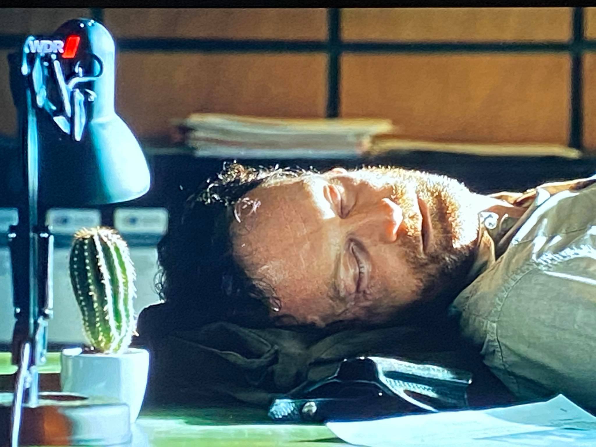 Prägnant auch die Nachtszenen an der Wurstbude und später im Präsidium. Es entsteht unverhofft doch etwas Nähe zwischen Faber und Bönisch, die Faber in „Kollaps“ zwar mehr im Scherz gesucht hat, aber in jedem Witz steckt ein Körnchen Wahrheit. Nun ist’s an Bönisch, den nächsten Schritt zu machen, doch er wehrt sie mit den Worten „lieber nicht“ ab. Gründe fallen mir hier immerhin zwei ein. Einerseits ist es einfach sehr heiß in Dortmund, beide sind müde und betrunken, und er mag durchaus Angst haben, dass das nicht der richtige Moment ist, dass sie es hinterher bereuen könnten. Andererseits ist er alles andere als bereit dafür. Als er später in seinem Wagen mit der Wurstbuden-Dame zu Gange ist, stellt er fest, dass auch das nicht so richtig geht. Mit den Worten „was willst du eigentlich von so Pack wie mir?“ schickt er sie weg. Und irgendwie weiß man, die Frage galt eigentlich Bönisch. Er hat Angst, ihr nicht gerecht werden zu können, und diese Angst ist zu diesem Zeitpunkt vielleicht nicht vollkommen unberechtigt. Er verbringt die Nacht also draußen, im Revier, draußen und wieder im Revier. Zum Schlafen ist es eh irgendwie zu heiß, irgendwann schläft er dann auf seinem Schreibtisch ein. Direkt neben seinem Kaktus, näher an Bönisch geht’s halt gerade noch nicht, da sind zu viele Stacheln, die wehtun, auf beiden Seiten. „Bilden Sie sich bloß nichts ein wegen gestern Abend“, sagt sie am nächsten Morgen. Herrlich lapidar, nur ein minibisschen peinlich betreten, und er löst die Situation mit einem „ich war und bin eingebildet“ für mich komplett auf. Es bleibt nicht peinlich, die Uhren werden einfach zurückgedreht.