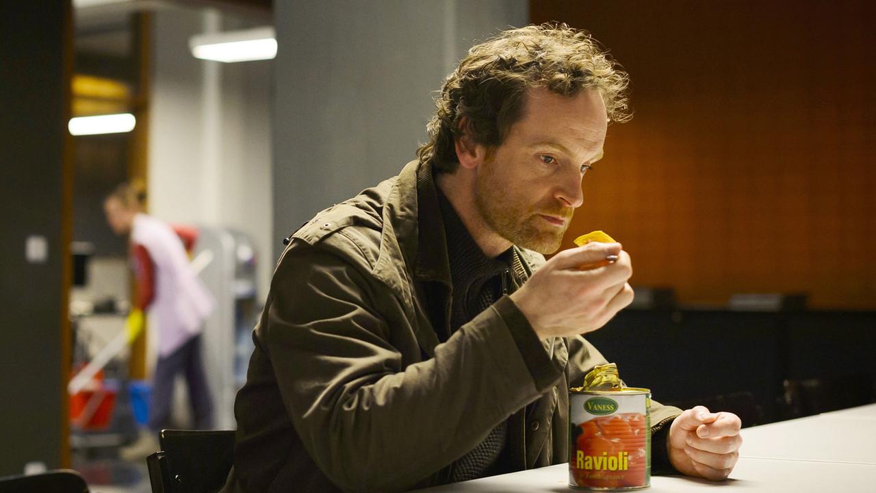 Und dann Auftritt Peter Faber: Gedankenverloren steht er auf dem Dach seiner alten Schule und schaut mit undurchdringlichem Blick herunter auf den Schulhof. Er sieht nicht so aus, als ob er springen will, aber er sieht auch nicht so richtig danach aus, als ob er das nicht will. Der Zuschauer wird gleich in der ersten Szene mit Faber umfassend bedient: Aperitiv, Hors d’Oeuvre, erster Gang, zweiter Gang, Zwischengang, dritter Gang, Zwischengang, Nachspeise, Käse, Wein. Der Mann ist einfach durchgedreht. „Alles verändert sich“, entgegnet ihm der genervte Hausmeister, „das ist so. Und das bleibt so.“ Dann fragt er Faber, was er denn da überhaupt mache. „Bisschen in der Vergangenheit stöbern“, meint der. „Dann machen Sie das im Museum.“ Faber gibt sich geschlagen und in seiner nächsten Szene am Tatort als komplettes Arschloch, als er nicht für eine Sekunde in der Lage ist, seinen neuen Kollegen Kossik anzuschauen. Kein Blickkontakt. Kossik ist angekotzt und wirkt ohnehin leicht reizbar. Und das nach DER Nacht, wer’s verstehen will…
