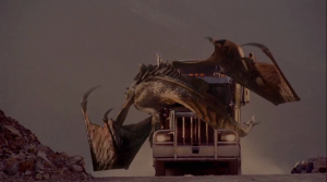 Die des mutigen Helden in unserem so klischeehaften wie unterhaltsamen Abenteuer fällt allerdings Nick Chinlund zu, der eigentlich eher als Bösewicht bekannt ist. Unter anderem spielt er nämlich den Kerl, der in „Con Air“ den Stoffhasen nicht zurücklegt, und verursacht Alpträume als mysteriöser Serienkiller Donnie Pfaster in „Akte X“. Ausgerechnet er rettet – soviel seit verraten – den Tag, nachdem die fliegenden Riesenechsen einen Dorfbewohner nach dem anderen schnabuliert haben. Was im Übrigen mit durchaus anständigen Spezialeffekten dargestellt wird. Die Computeranimationen sind sehr solide und werden angenehm sparsam eingesetzt.